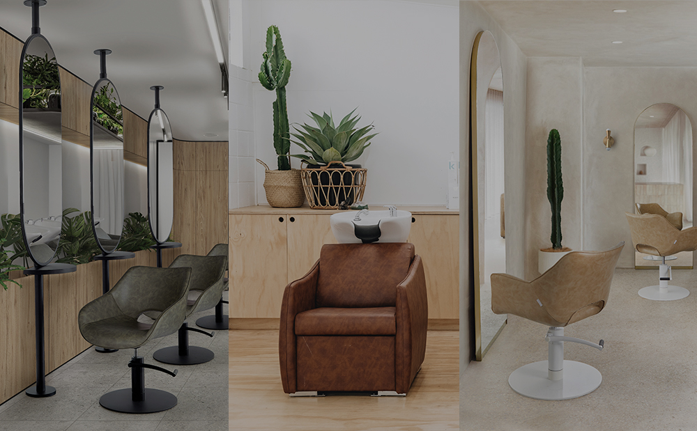 Für etwas Besonderes bei den Salonmöbeln wurde der Comfortel Lara Blush Reclining Salon Chair gewählt, um den Raum zu ergänzen. Im Vergleich zu traditionellen Friseurstühlen ist der Blush-Stuhl kompakt in der Größe, wobei die Blush-Farbe des Stuhls mit einem mattschwarzen Fuß kombiniert wurde. Tori personalisierte das Aussehen der Stühle, indem sie die Armlehnen durch eine lokale Pulverbeschichtungsfirma schwarz lackieren ließ.