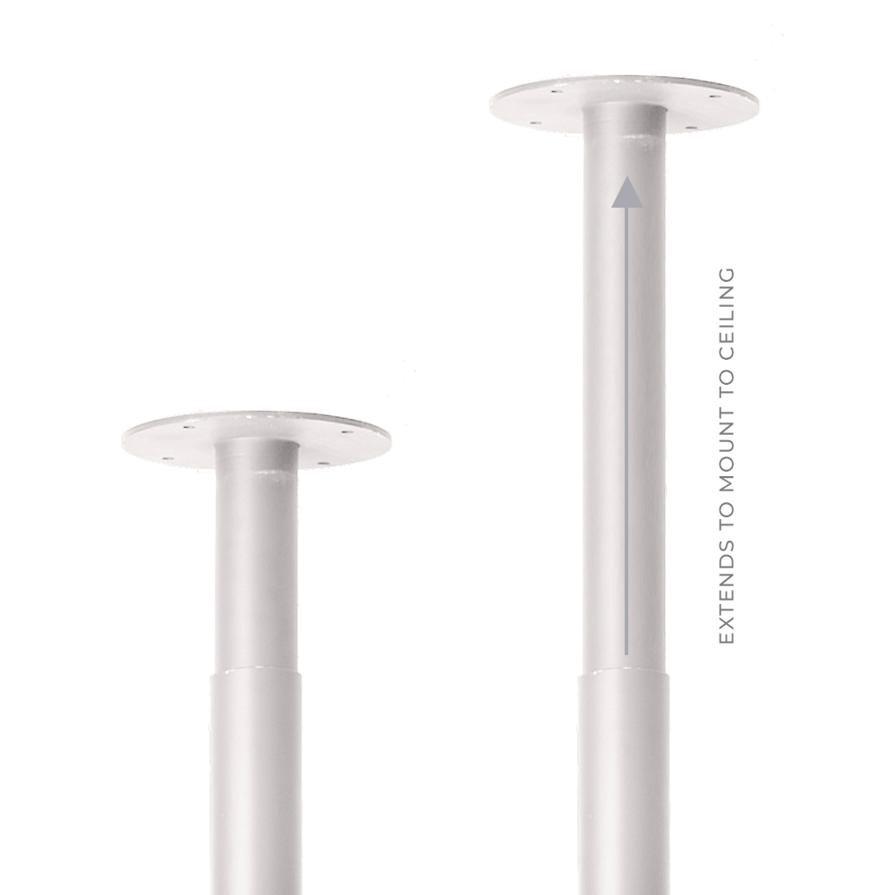 Das Verlängerungsstück an der Spitze ist so konzipiert, dass es an der Decke befestigt werden kann, indem es nach oben verlängert wird! So können Sie den Strom von der Decke herunterholen und Ihre LED-Spiegeloption anschließen oder einfach Ihre Werkzeuge über den zentralen Mast mit Strom versorgen. Aus massivem, pulverbeschichtetem Metall in matter Optik gefertigt, wird er am Boden verschraubt und bildet eine moderne Stylingstation, an der Sie auf jeder Seite ausgewählte Comfortel-Spiegel anbringen können.