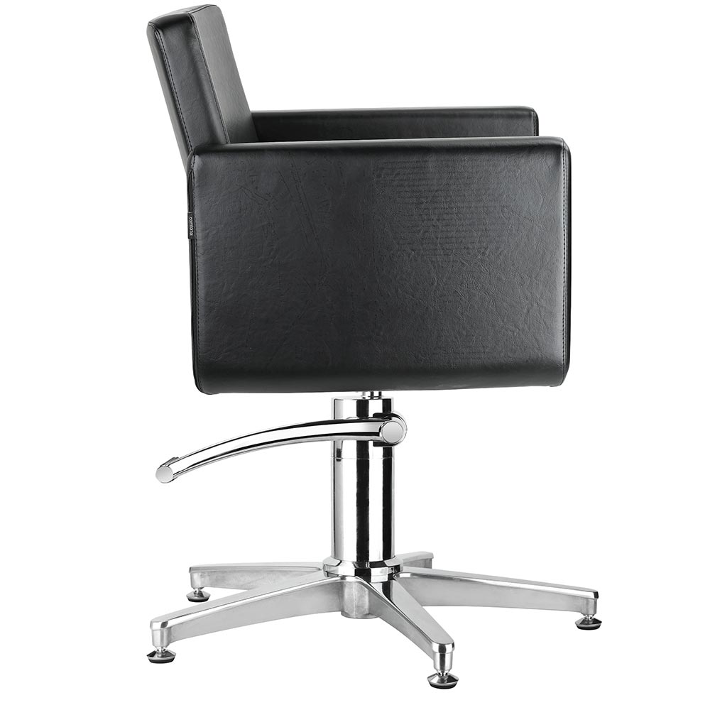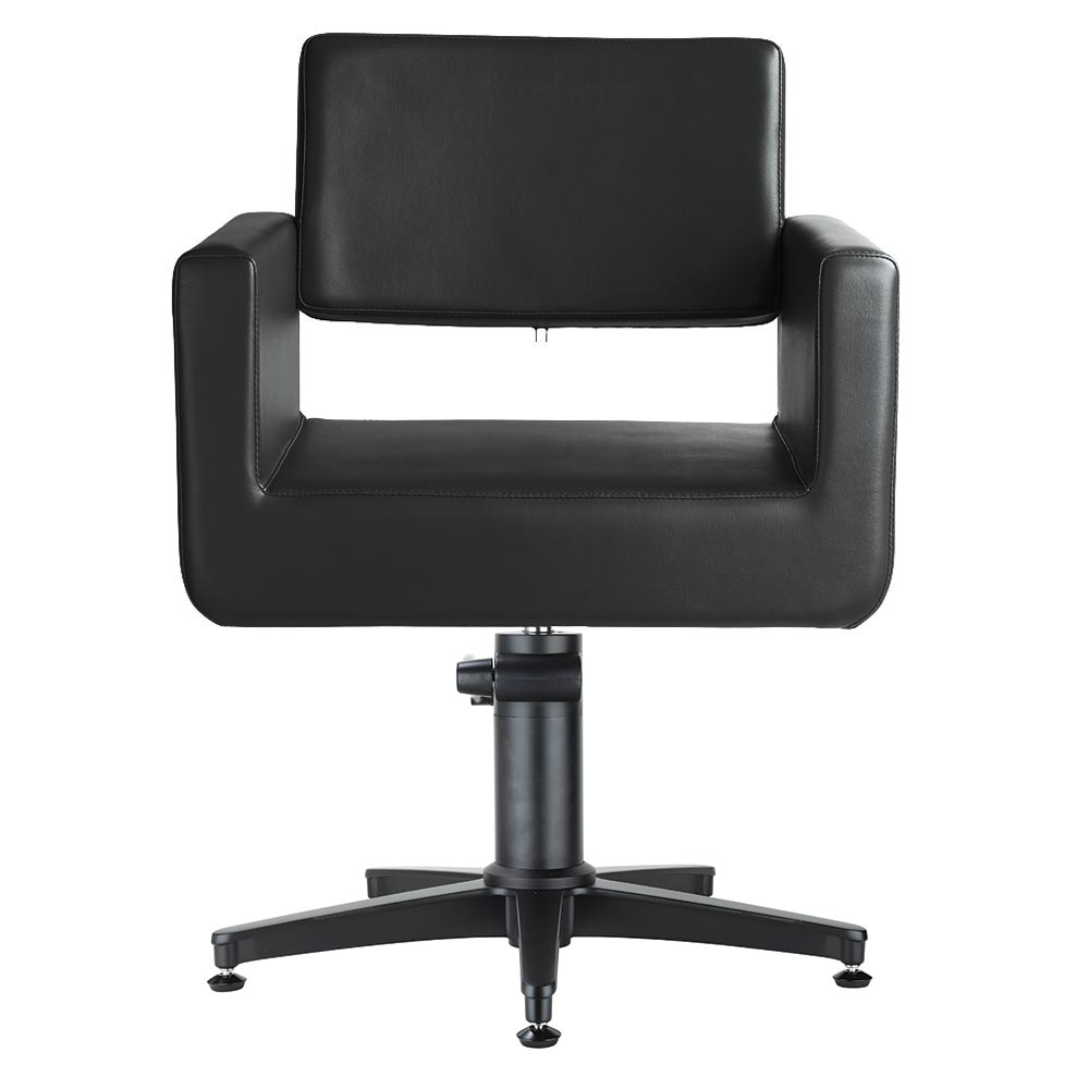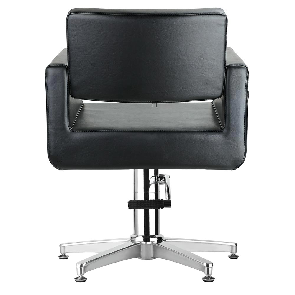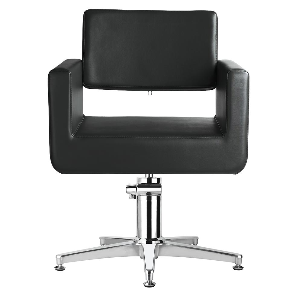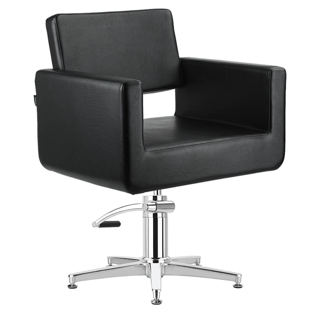 Mit seinen klaren Konturen ist dieser bequeme, gepolsterte Friseurstuhl ein Favorit unter den Salons.